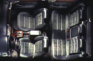 The first "atmosphere" is Ambition, which is targeted toward the traditional luxury car buyer who prefers a timeless and sophisticated interior. Ambition comes with the choice of Maroon or Onyx leather or leatherette, complimented by Aluminum Graphite or Polished Burled Walnut trims. Even the front seat pattern for Ambition is different than the other two, with a vertical stitching pattern and rich color selections Ambition will satisfy the most refined customer. The second atmosphere is Ambiente, which offers a sporty feel. Melange, Royal Blue, and Vanilla in a horizontal patterned seat compliment the Aluminum Pearl or the Polished Vavona. The color selections are available in both leather and leatherette. Advance is the third theme that provides softer hues and a choice between leather and cloth. This southwestern earthy theme is complemented by Open Pore Burled Walnut in Terra Cotta and Titanium colored Aluminum Trim. The three colors available are Terra Cotta, Lafo Green, and Tungsten Gray.