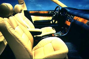 The luxury sedan gently glided to the highway entrance, and upon slipping it into the Tiptronic system the A6 quickly transformed into a racecar. The powerful V6 packs a powerful punch with its 200 horsepower 2.8-liter DOHC 5-valve engine. This powerhouse uses a revolutionary combination of a five speed automatic transmission with the Tiptronic system and the four link front suspension on both drivetrains (Quattro and FrontTrak) to create the ultimate performance sedan. The A6 hugged the curves and blasted up hills at the flick of the wrist, and even when using the automatic four-speed it conquered steepest of grades with the greatest of ease. The Tiptronic system creates the perfect mesh between comfortable sedan and agile sports car; it truly is the next generation.