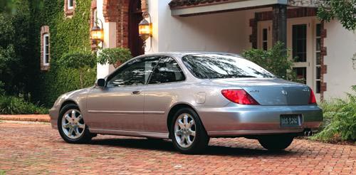 OUTSIDE - The CL is the first Acura model designed, manufactured and assembled in this country at the company's various Ohio operations. It uses crisp, hard edges offset by smooth, soft lines, and while its nose looks somewhat like the front of the new Honda Accord Coupe, the rest of its shell, especially the "bobbed-tail" treatment, creates a styling niche of its own. Thin strips of chrome surround the side windows and new grille, and last year's matte-black extensions under the side sills and bumpers are now painted body-color. The CL's trunk can swallow over 17 cubic feet of cargo, with a very low liftover height, and amazingly, there is no lock cylinder in the trunk lid. New this year are brightly finished alloy wheels with 205/55R16 Michelin performance tires.