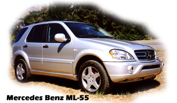 Is the ML55 perfect? Of course not. The company was trying to avoid the problem Range Rover have had for years, namely having to stop for fuel every 200 or so miles, consequently they fitted a larger gas tank. Something however had to give and it was the huge spare wheel. The result: start shopping for roof-racks otherwise you'll never ever get four people and their skis plus luggage to Squaw Valley for Christmas. Even four large golf bags are marginal.