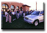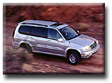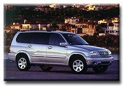 We encountered virtually every road condition possible, and I found that the XL-7 rides and handles wonderfully. It had plenty of zip going up hills; effortless passing power; and because of the long wheelbase, it's a smooth mover even on rough unpaved surfaces. There is absolutely, positively no relationship between the driving characteristics of the XL-7 and the "bronco-busting" like ride of the Samurai or other small SUVs. Later that afternoon, we took the XL-7s on a fairly rugged off-road course in the mountains surrounding the hotel area. While the course might not equal a Camel Trophy race over the Andes, it was significantly more challenging and daring then the great majority of American drivers are ever likely to face. And the XL-7 performed flawlessly. In addition, yet another feature of the XL-7 is its filtered air conditioning system, which helped to keep the dust and dust effects of the desert to an imperceptible level inside the vehicle. Gary told me that Suzuki is scheduled to produce 30,000 XL-7 units in its first year. Based upon the price, ride, and features of the vehicle, I'd be surprised if they didn't sell out in 6 to 9 months. Suzuki predicts the market for the XL-7 will be predominantly female - soccer mom types (70% or so). I don't know. The XL-7 has everything, including an attractive price that could easily lure a young male customer: plenty of room for all their sports stuff, power, authentic off-road capabilities, and towing power. The XL-7 is rated to tow up to 3,000 pounds: enough for smaller boats, snowmobiles, jet skis, and trailers. And while I'm on the subject of towing, another great feature of the XL-7 (which is also shared by the standard Vitaras, Grand and otherwise), is that it can be towed without accruing road miles - making the XL-7 the perfect vehicle to tow behind a motor home. You can schlep it all across the country and legally only add miles when you're actually driving it. For a serious RVer, this could save thousands of depreciating miles over the life of the vehicle. I liked the old Grand Vitara, but I'm really enamored with the new XL-7. It has the features and capabilities of the most popular mid-size SUVs, but a price that competes with all others in the small SUV class. Last year, the Grand Vitara garnered a number of prestigious awards and accolades. The XL-7 deserves to enjoy no less acceptance and notoriety. For someone who wants and/or requires a full use SUV, the XL-7 is the best all-around buy on the SUV market for 2001.