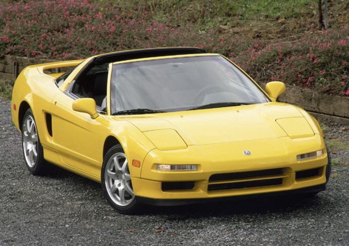 OUTSIDE - The pointed shape of the NSX has been unchanged for ten years, but it is only now starting to wear thin. Careful attention went into sculpting its present shape to strike a compromise between lift, drag and stability. Its cab-forward design sets its slender A-pillars just behind the front wheels. The hood juts in a flat plane away from the cockpit for about two feet, then drops sharply to the low-slung nose. A rear spoiler is blended into the tail, while large side scoops feed fresh air into its engine bay. Removing the Targa-style top is easy: unlock two latches, lift the panel manually, then store it in special slots in the trunk. The forged aluminum alloy wheels are designed for massive strength and light weight.