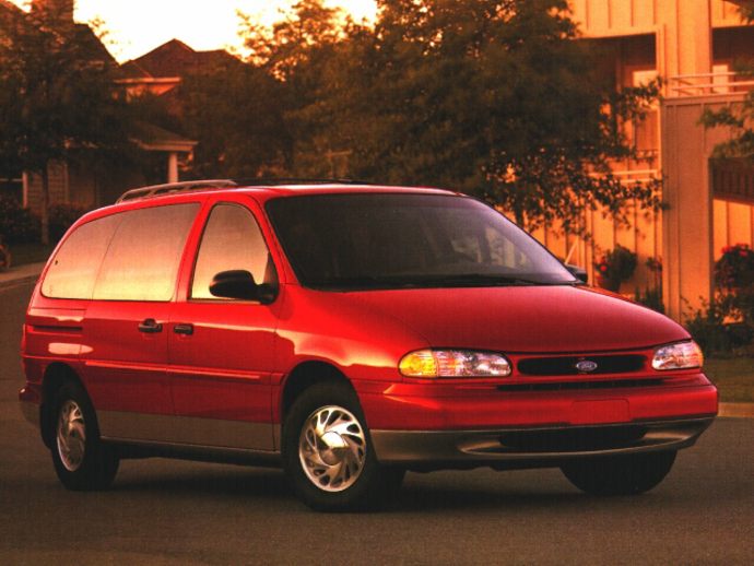 PERFORMANCE: Minivans have been criticized as lacking power. The venerable Ford 3.8-liter pushrod V6 has some new features to silence the critics. A split-port induction manifold that uses technology from the Taurus SHO engine helps boost horsepower to an even 200, a 30 percent increase. Torque is also up. It is the most powerful engine currently offered in a minivan. Matched with a smooth 4-speed automatic transmission, there is plenty of power for passing, merging, and hills. Trailers of up to 3500 pounds can be towed with the optional towing package.