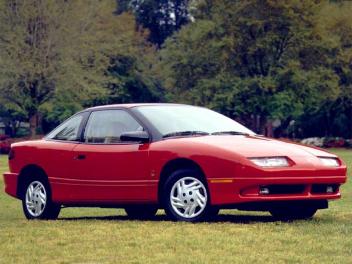 OUTSIDE - Saturn's cars are constructed in a unique way. Dent and corrosion-resistant polymer body panels are attached to an unusual steel space frame, which is very rigid, yet lightweight. But its body isn't made entirely of plastic. The hood, roof and rear deck lid are steel, which provides interior protection by absorbing energy during a crash. The coupe underwent a slight styling change in 1995, and isn't scheduled for a makeover until next year. It still looks relatively modern, and has aged well considering the current crop of rounded cars available in today's market. SC1 models come standard with 14-inch wheels with full hubcaps, while this year a 15-inch aluminum wheel and larger tires are optionally available.